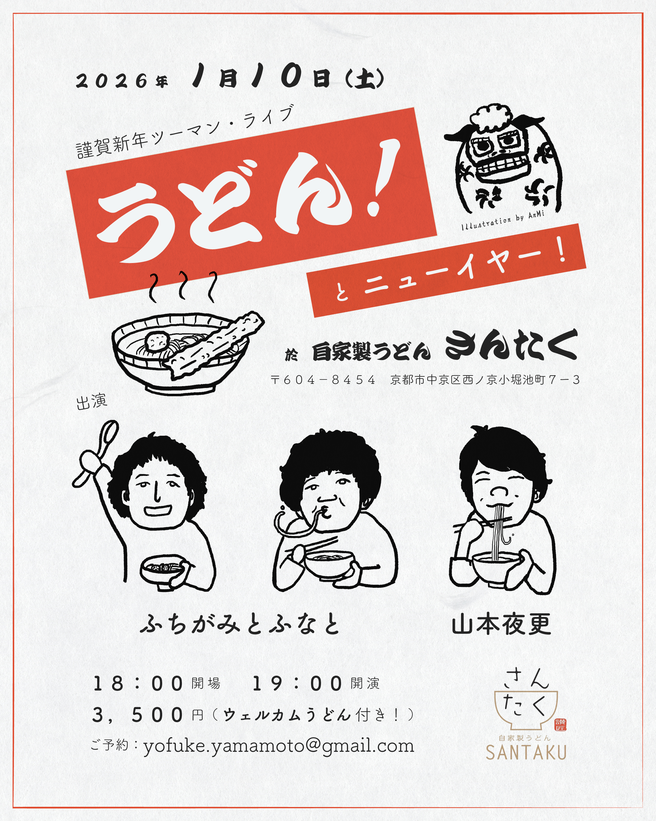 謹賀新年ツーマン・ライブ《 うどん!とニューイヤー! 》at 自家製うどん・さんたく